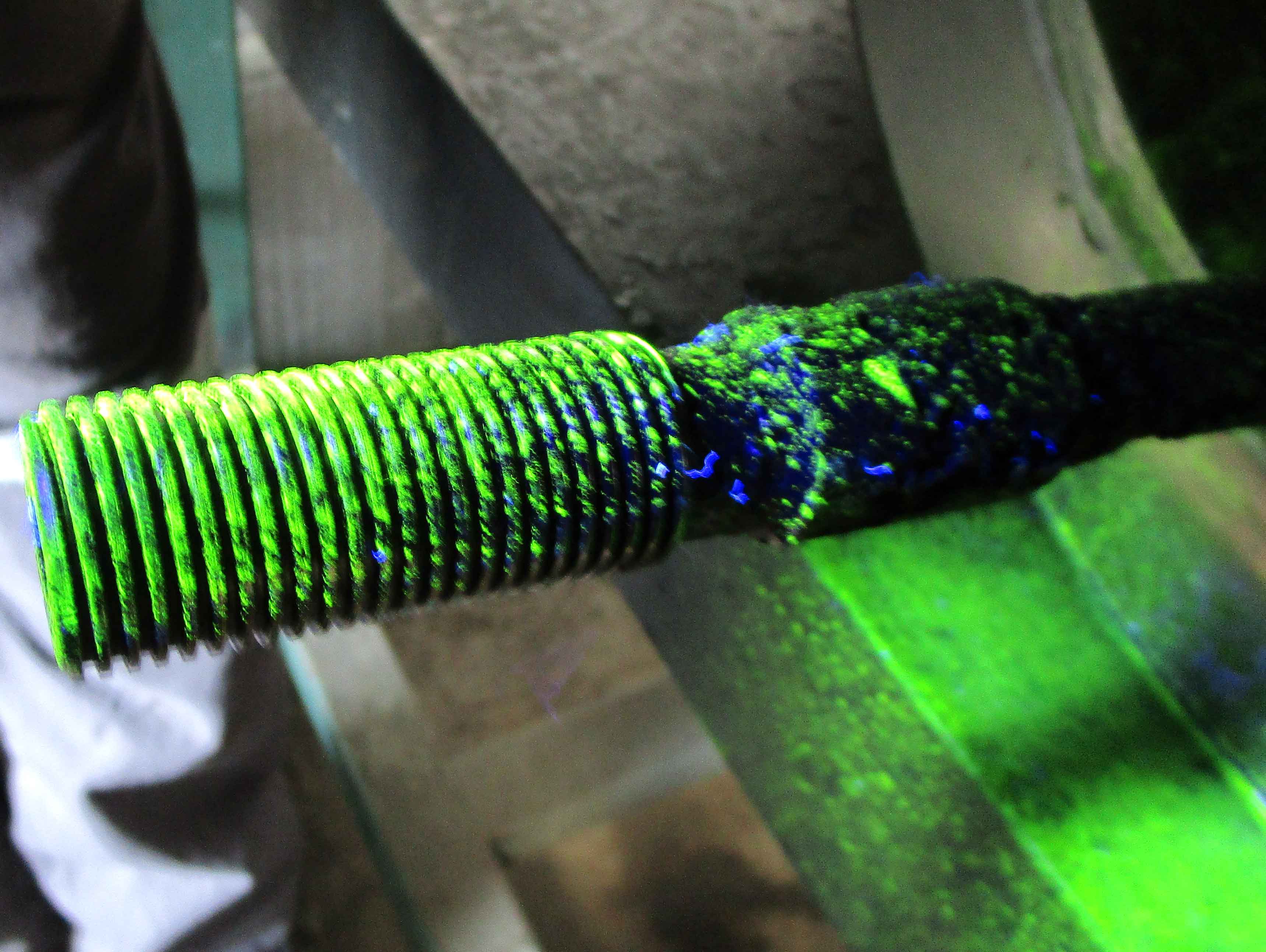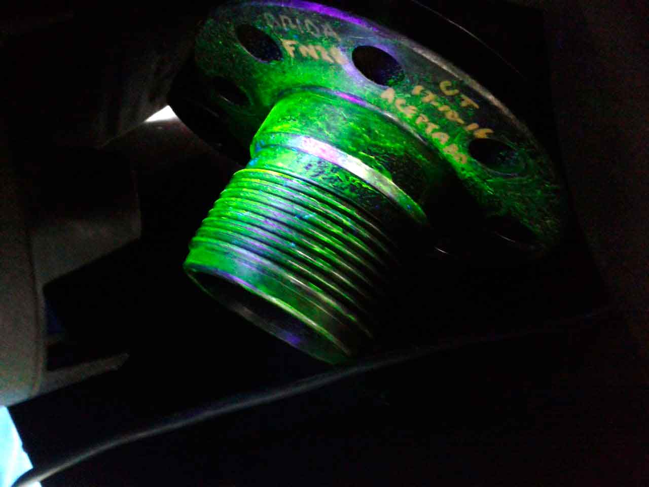 El método de inspección por partículas magnéticas se aplica para localizar discontinuidades superficiales y sub-superficiales (grietas, costuras, traslape, laminación, etc.) sobre materiales ferromagnéticos (conexiones roscadas, uniones soldadas, piezas de fundición, piezas conformadas, etc.) empleando yugos electromagnéticos y bobinas, con técnicas de partículas secas, húmedas y de color visibles y fluorescentes. Empleando criterios de aceptación o rechazo descritos en las especificaciones, códigos y nomas aplicables de acuerdo a las solicitudes y necesidades de nuestros clientes.